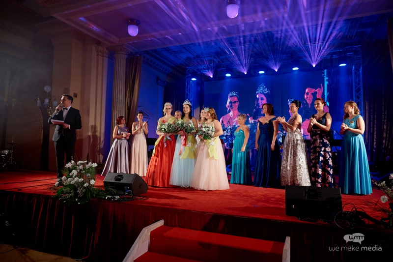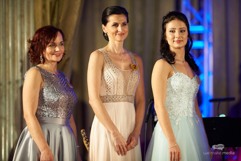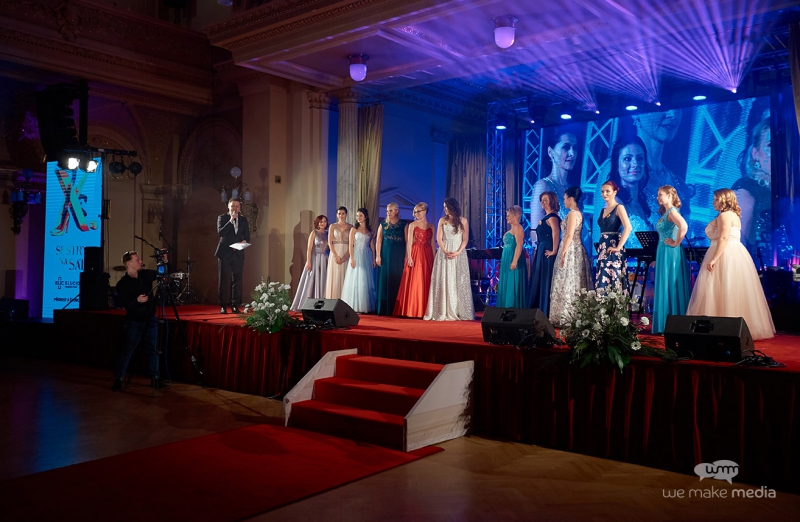 Finalistky společně se svými porotci, moderátorem a jednatelkou organizující společnosti We Make Media s. r. o., MUDr. Ivanou Kaderkovou